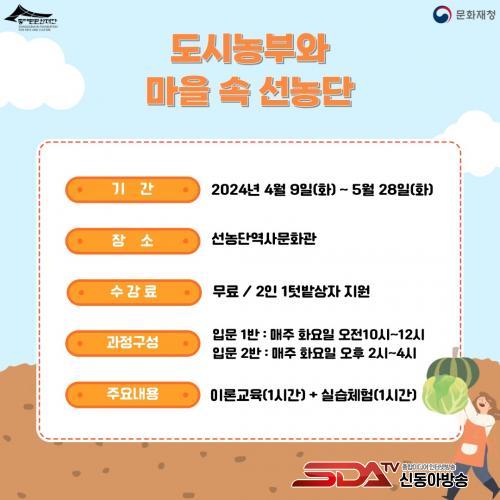 ÇØ´ç »ç¾÷Àº Ãâ°ÝÇ϶ó! µ¿ÂÊÀÇ Çª¸¥ ¿ë»ç´Ü(µ¿´ë¹®±¸ ÀÏ´ëÀÇ Áö¿ª¹®È ÀÚ¿øÀ» ޹æÇϰí ÇнÀÇÏ´Â ÇÁ·Î±×·¥) µµ½Ã³óºÎ¿Í ¸¶À» ¼Ó ¼±³ó´Ü(¼±³ó´ÜÀÇ ÀÇÀǸ¦ À̾î¹Þ¾Æ µµ½Ã³ó¾÷ ÀÌ·ÐÀ» ÇнÀÇϰí üÇèÇÏ´Â ÇÁ·Î±×·¥) Á¦½Å³ó¾¾! Áö±¸¸¦ ÁöÄÑÁà(³ó»çÀÇ ½ÅÀÎ Á¦½Å³ó¾¾¸¦ µîÀåÀι°·Î ±âÈÄ À§±â »óȲÀ» ´Ù·é üÇè ¹× Çø®¸¶ÄÏ ¿î¿µ) ÃÑ 3°³ ÇÁ·Î±×·¥À¸·Î ±¸¼ºµÇ¾ú´Ù.