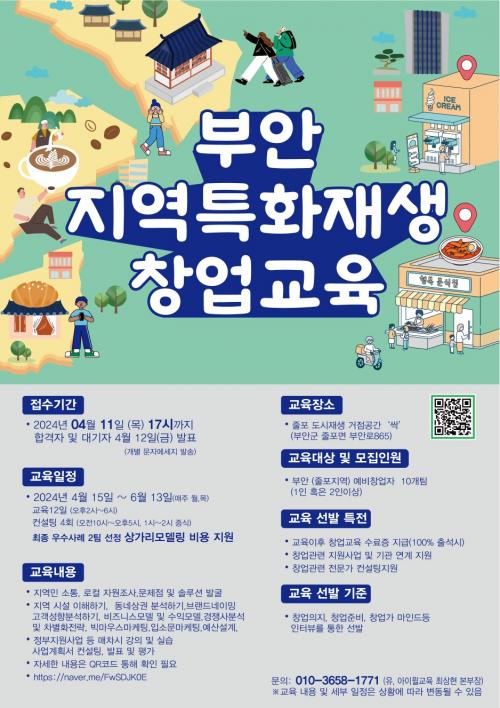 ±³À°´ë»ó ¹× ¸ðÁýÀοøÀº ºÎ¾È(ÁÙÆ÷Áö¿ª) ¿¹ºñâ¾÷ÀÚ 10°³ÆÀÀ» ¼±¹ßÇÏ¸ç ±³À°»ý¿¡°Ô´Â â¾÷±³À° ¼ö·áÁõ, â¾÷°ü·Ã Áö¿ø»ç¾÷ ¹× ±â°ü ¿¬°èÁö¿ø, â¾÷°ü·Ã Àü¹®°¡ ÄÁ¼³ÆÃ Áö¿ø µîÀ» Áö¿øÇÑ´Ù.