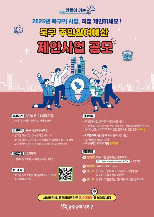½Åû ÁÖü´Â ºÏ±¸ ¿¹»ê Æí¼º°ú ÁýÇà¿¡ °ü½ÉÀÌ ÀÖ´Â ºÏ±¸ »ýȰ±ÇÀÚÀÌ°í °ø¸ð¿¡ Âü¿©ÇϰíÀÚ ÇÏ´Â ÁÖ¹ÎÀº ¾È³»¹®À» Âü°íÇÏ¿© Á¦¾È»ç¾÷ ½Åû¼¸¦ ºÏ±¸Ã» ´©¸®ÁýÀ» ÅëÇØ ¿Â¶óÀÎÀ¸·Î Á¦ÃâÇϰųª ºÏ±¸Ã» ±âȹÁ¶Á¤½Ç ¶Ç´Â °¡±î¿î µ¿ ÇàÁ¤º¹Áö¼¾ÅÍ¿¡ ¿ìÆí․¹æ¹® ¹æ¹ýÀ¸·Î Àü´ÞÇÏ¸é µÈ´Ù.