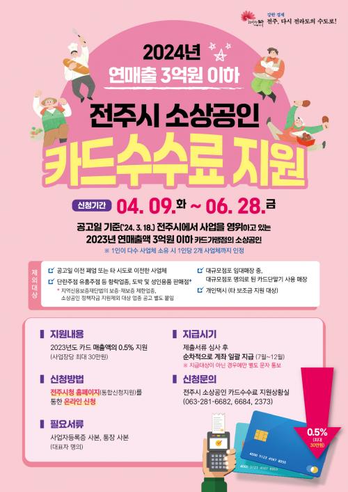 Èñ¸ÁÀÚ´Â ½Åû ±â°£ ³»¿¡ ÀüÁֽà ´©¸®Áý ÅëÇÕ½ÅûÁö¿ø¿¡¼ »ç¾÷ÀÚµî·ÏÁõ »çº»°ú ´ëÇ¥ÀÚ¸íÀÇ ÅëÀå »çº»À» ÷ºÎÇØ ¿Â¶óÀÎÀ¸·Î °£´ÜÈ÷ ½ÅûÇÒ ¼ö ÀÖ´Ù. ¼Ò»ó°øÀÎ Ä«µå¼ö¼ö·á Áö¿ø»ç¾÷¿¡ ´ëÇÑ ÀÚ¼¼ÇÑ »çÇ×Àº ÀüÁֽà ´©¸®Áý¿¡ °Ô½ÃµÈ °ø°í¹®À» Âü°íÇÏ¸é µÈ´Ù.