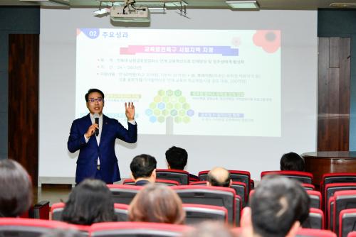 °£´ãȸ¿¡ Âü¼®ÇÑ ÇÑ ±³Àå¼±»ý´ÔÀº ¡°ÀüºÏ´ë ³²¿ø±Û·ÎÄÃÄ·ÆÛ½º ¼³¸³, ±³À°¹ßÀüƯ±¸ ÁöÁ¤ µî ³²¿ø ±³À°ÀÇ Èñ¸ÁÀ» È®ÀÎÇÒ ¼ö ÀÖ´Â ¶æ±íÀº ½Ã°£À̾ú´Ù¡±°í ¸»Çϸç, ³²¿ø½ÃÀÇ ±³À°»ç¾÷¿¡ ´ëÇÑ Àû±ØÀûÀÎ Áö¿øÀ» ¿ä±¸Çß´Ù.