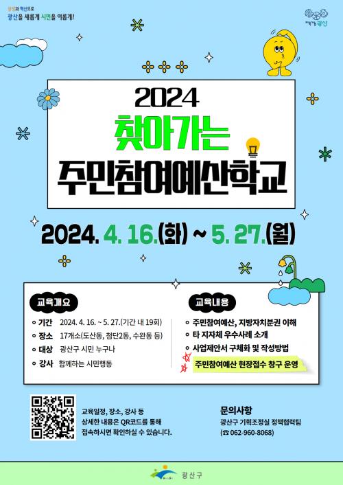 ã¾Æ°¡´Â ÁÖ¹ÎÂü¿©¿¹»êÇб³´Â ±¤»ê±¸ ½Ã¹Î ´©±¸³ª º°µµÀÇ ½Åû ÀýÂ÷ ¾øÀÌ Âü¿©ÇÒ ¼ö ÀÖÀ¸¸ç, ±¸Ã¼ÀûÀÎ ±³À° Àå¼Ò, ÀÏÁ¤Àº ¡®±¤»ê±¸ ÁÖ¹Îe(ÀÌ)Âü¿©¡¯, ¡®±¤»ê±¸ ÁÖ¹ÎÂü¿©¿¹»ê ´©¸®Áý¡¯ °øÁö »çÇ׿¡¼ È®ÀÎÇÒ ¼ö ÀÖ´Ù.