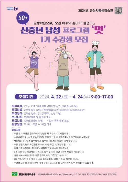 ¡¸50+ ½ÅÁ߳⠳²¼º ÇÁ·Î±×·¥ ¡®¸Ú¡¯¡¹Àº Æò¼Ò Æò»ýÇнÀ Á¢±ÙÀÌ ¾î·Á¿ü´ø 50¼¼ ÀÌ»ó ½ÅÁ߳⠳²¼ºµéÀ» ´ë»óÀ¸·Î Ãë¹Ì ¡¤ ¿©°¡ ¹× ¹®È ¡¤ ¿¹¼ú µî ´Ù¾çÇÑ Æò»ýÇнÀ ÇÁ·Î±×·¥À» Á¦°øÇÑ´Ù.
