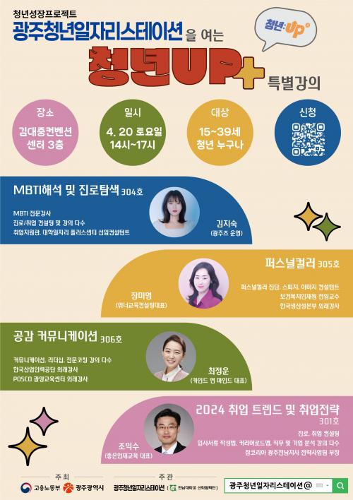 ¡®Ã»³âUP+¡¯ Ư°Àº 15¼¼ºÎÅÍ 39¼¼ û³â ÃÑ 160¿©¸í(°ÀÇ´ç 40¸í)À» ´ë»óÀ¸·Î, ¡ãMBTI ºÐ¼®°ú Áø·Î Ž»ö ¡ã¸ÂÃã »ö»ó(ÆÛ½º³Î Ä÷¯) Áø´Ü°ú À̹ÌÁö »ó´ã(ÄÁ¼³ÆÃ) ¡ã¿ÃÇØ ä¿ë °æÇâ°ú Ãë¾÷ Áغñ Àü·« ¡ã°ø°¨ ÀÇ»ç¼ÒÅë µîÀ» ¼³¸íÇÑ´Ù.