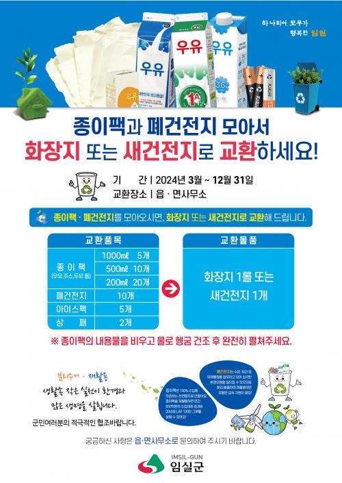 ±³È¯ ±âÁØÀº ǰ¸ñº°·Î ¡ãÁ¾ÀÌÆÑ 1,000ml 5°³, 500ml 10°³, 200ml 20°³ ¡ãÆó°ÇÀüÁö 10°³ ¡ã¾ÆÀ̽ºÆÑ 5°³ ¡ã»óÆÐ 2°³¸¦ ¸ð¾Æ¿À¸é ÈÀåÁö ¶Ç´Â »õ °ÇÀüÁö 1°³·Î ±³È¯ °¡´ÉÇÏ´Ù. Á¾ÀÌÆÑÀº ¿ìÀ¯ÆÑ, ÁÖ½ºÆÑ, µÎÀ¯ÆÑ µîÀÌ ÇØ´çµÇ¸ç ¸ê±ÕÆÑÀº Á¦¿Ü ´ë»óÀÌ´Ù.