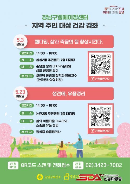 °­ÀǴ ȸÂ÷º° ¼±Âø¼ø 120¸í ´ë»óÀ¸·Î »çÀü ½ÅûÀ» ¹Þ´Â´Ù. »çÀü ½Åû ¹æ¹ýÀº È«º¸ Æ÷½ºÅÍÀÇ QRÄڵ带 ÅëÇÑ ½Åû¼­¸¦ Á¦ÃâÇϰųª °­³²±¸À£¿¡ÀÌ¡¼¾ÅÍ¿¡ ÀüÈ­ Á¢¼ö(02-3423-7002)¸¦ ÇÒ ¼ö ÀÖ´Ù.