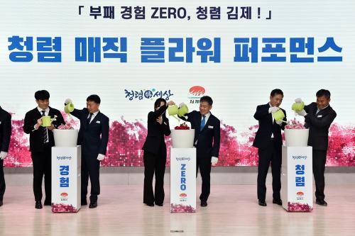 À̾î Á¤¼ºÁÖ ±èÁ¦½ÃÀå, ÀÌÂùÁØ ºÎ½ÃÀå, ±¹´Ü¼ÒÀå µîÀÌ Âü¿©ÇØ °íÀ§°øÁ÷ÀÚÀÇ ¼Ö¼±¼ö¹üÀ¸·Î ½ÃÀÇ Ã»·Å ¹®È­¸¦ È­·ÁÇÏ°Ô ²É ÇÇ¿ì°Ú´Ù´Â Àǹ̷Π½ÃÈ­ÀÎ ¹éÀÏÈ« È­ºÐ¿¡ ¹°À» ÁÖ¾î û·Å ºñÀü(ºÎÆÐ °æÇè Zero, û·Å ±èÁ¦) û·ÅÀÇ ²ÉÀÌ ÇǾ´Â ¡¯Ã»·Å ¸ÅÁ÷ Çöó¿ö ÆÛÆ÷¸Õ½º¡®¸¦ ¼±º¸¿´´Ù.