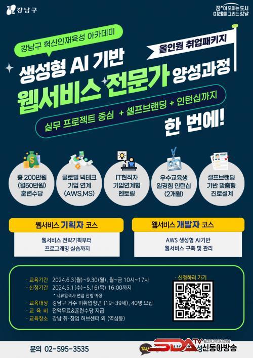 [½Åµ¿¾Æ¹æ¼Û °­³²±¸-À̽ŵ¿±âÀÚ]°­³²±¸°¡ ¿À´Â 6¿ù °³°­ÇÏ´Â Çõ½ÅÀÎÀç¾ç¼º ¾ÆÄ«µ¥¹Ì¿¡¼­ °­³²±¸ °ÅÁÖ ¹ÌÃë¾÷ û³â(19¼¼~39¼¼)À» ´ë»óÀ¸·Î »ý¼ºÇü AI ±â¹Ý À¥¼­ºñ½º Àü¹®°¡ °úÁ¤À» ¿î¿µÇÑ´Ù.