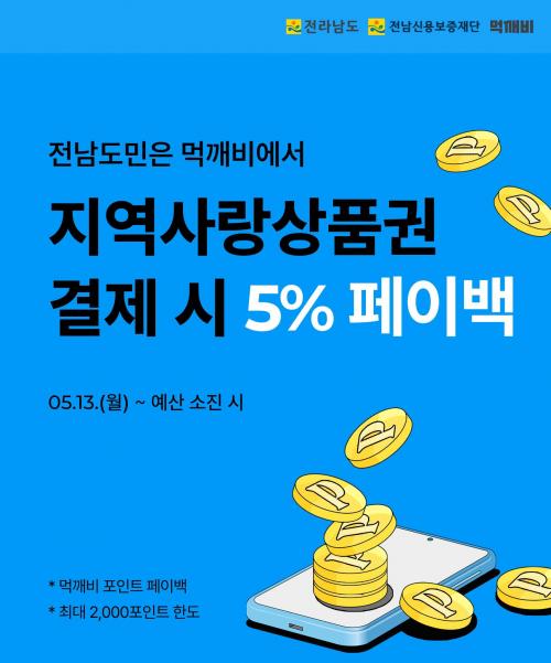 [½Åµ¿¾Æ¹æ¼Û=À̺´½Ä±âÀÚ] Àü³² °ø°ø¹è´Þ¾Û ¡®¸Ô±úºñ¡¯¿¡¼­ 13ÀϺÎÅÍ Áö¿ª»ç¶û»óǰ±Ç °áÁ¦ ½Ã 5% ÆäÀ̹é À̺¥Æ®¸¦ ½ÃÀÛÇß´Ù.
