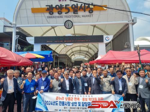 °æ»óºÏµµ »óÀο¬ÇÕȸ Á¤µ¿½Ä ȸÀåÀº ¡°ÈǸ¢ÇÑ ½Ã¼³ ¿©°Ç¿¡ ³ëÁ¡¼± Áؼö, Çùµ¿Á¶ÇÕ ¿î¿µ µî ½ÃÀå »óÀεéÀÇ Àû±ØÀûÀÎ Âü¿©¿¡ ³î¶ú´Ù¡±¸ç ¡°¹°±¤Çü »ç¾÷°ú µðÁöÅÐ ÀüÅë½ÃÀå µî Á¤ºÎ °ø¸ð»ç¾÷À» ¼º°øÀûÀ¸·Î ÃßÁøÇϰí ÀÖ´Â ±¤¾ç5ÀϽÃÀåÀÇ ¼±Áø»ç·Ê¸¦ Àß ¹è¿ö°¡°Ú´Ù¡±°í ÀüÇß´Ù.