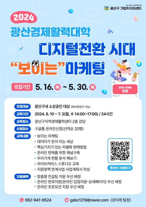 1Â÷´Â ÀÌ´Þ 30ÀϱîÁö, 2Â÷´Â 6¿ù 14ÀϱîÁö °¢ 20¸íÀ» ¼±Âø¼øÀ¸·Î ±³À°»ýÀ» ¸ðÁýÇÑ´Ù. ½ÅûÀº ±¤»ê±¸ ±â¾÷ÁÖÄ¡ÀǼ¾ÅÍ ´©¸®Áý, È«º¸¹°¿¡ Àִ ť¾Æ¸£(QR) ÄÚµå µîÀ» ÅëÇØ ¿Â¶óÀÎÀ¸·Î Á¢¼öÇÑ´Ù.
