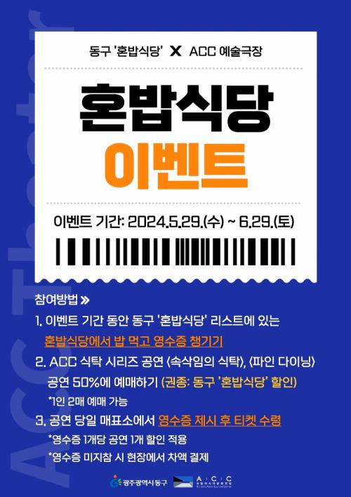 Âü¿© ¹æ¹ýÀº µ¿±¸ È¥¹ä½Ä´çÀ» ÀÌ¿ëÇÑ ÈÄ ±¹¸³¾Æ½Ã¾Æ¹®ÈÀü´ç ´©¸®Áý¿¡¼ ACC ½ÄŹ ½Ã¸®Áî °ø¿¬À» 50% ÇÒÀÎµÈ °¡°Ý¿¡ ¿¹¸ÅÇÏ¸é µÈ´Ù. °ø¿¬ ´çÀÏ ¸ÅÇ¥¼Ò¿¡¼ È¥¹ä½Ä´ç ÀÌ¿ë ¿µ¼öÁõ°ú ¿¹¸Å ƼÄÏÀ» Á¦½ÃÇÏ°í °ø¿¬À» °ü¶÷ÇÒ ¼ö ÀÖ´Ù.