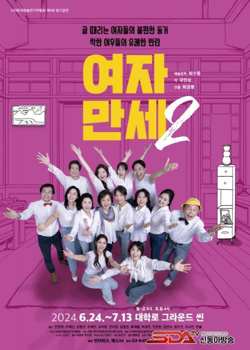 ÇÑÆí, ¿¬±Ø <¿©ÀÚ¸¸¼¼2>´Â 2024³â 6¿ù 24ÀÏ(¿ù)ºÎÅÍ 7¿ù 13ÀÏ(Åä)±îÁö ´ëÇзΠ±×¶ó¿îµå¾À¿¡¼ °ø¿¬µÈ´Ù. 5¿ù 31ÀÏ(±Ý)ºÎÅÍ ÀÎÅÍÆÄÅ© ƼÄÏÀ» ÅëÇØ ¿¹¸Å °¡´ÉÇϸç, 10»ì ÀÌ»ó ³ªÀÌ Â÷À̰¡ ³ª´Â 3ÀÎ °ü¶÷°´À» À§ÇÑ 3´ëÇÒÀÎ, ¿©¼º³¢¸® °ü¶÷ ½Ã Àû¿ë °¡´ÉÇÑ ¿©ÀÚ³¢¸® ÇÒÀÎ µî ´Ù¾çÇÑ ÇÒÀÎÇýÅÃÀÌ Á¦°øµÈ´Ù.