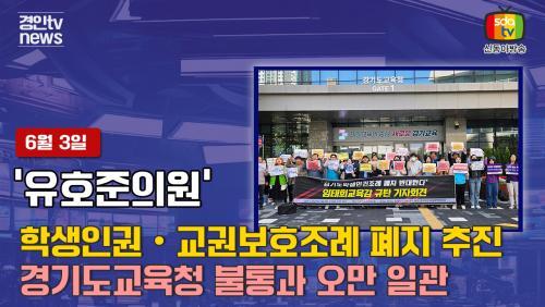 À¯È£ÁØ ÀÇ¿øÀº °æ±âµµ±³À°Ã»ÀÇ ÀÌ·¯ÇÑ ¿òÁ÷ÀÓ¿¡ ´ëÇØ ¡°°æ±âµµ±³À°Ã»ÀÇ ÀϹæÀûÀÎ ÇлýÀαÇÁ¶·Ê¿Í ±³±Çº¸È£Á¶·Ê ÆóÁö ÃßÁø°ú Ã¥ÀÓ Á¶·Ê Á¦Á¤ ÃßÁø¿¡ ´ëÇØ ¸ðµÎ°¡ ¹Ý´ëÇϰí ÀÖÀ½¿¡µµ ÀϹæÅëÇàÀ¸·Î ÀϰüÇÏ´Â °æ±âµµ±³À°Ã»ÀÇ ºÒÅë°ú ¿À¸¸¿¡ ºÐ³ëÇÑ´Ù.¡±¶ó¸ç °æ±âµµ±³À°Ã»ÀÇ ºÒÅëÀ» ÁöÀûÇÑ µÚ, ¡°Ã¥ÀÓ Á¶·Ê´Â ¾ÆÁÖ °£´ÜÇÏ°Ô ÃÖ¼ÒÇÑÀÇ ±Ç¸®¸¸À» Çб³±¸¼º¿øµé¿¡°Ô ¾à¼ÓÇϰí, ³ª¸ÓÁö´Â Çб³ ÇöÀå¿¡¼ ¾Ë¾Æ¼ ¡®ÀÚÀ²Àû¡¯À¸·Î Ç϶ó´Â ¹«Ã¥ÀÓÇÑ Á¶·Ê¡±¶ó¸ç °æ±âµµ±³À°Ã»ÀÌ Á¦ÃâÇÑ »õ Á¶·ÊÀÇ ³»¿ëÀ» °ÇÏ°Ô ºñÆÇÇß´Ù.