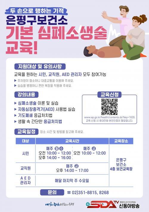 ½ÉÆó¼Ò»ý¼ú ±³À°Àº ¿À´Â 11¿ù±îÁö ¸ÅÁÖ ¿ù, ¼ö, ±Ý¿äÀÏ ÇÏ·ç 2ȸ¾¿ ÁøÇàµÈ´Ù. ½ÉÆó¼Ò»ý¼ú ÀÌ·Ð ¹× ½Ç½À. ÀÚµ¿½ÉÀåÃæ°Ý±â »ç¿ë¹ý, ±âµµ Æó¼â ÀÀ±Þóġ¹ý, »ýȰ ¼Ó °£´ÜÇÑ ÀÀ±Þóġ¹ý µîÀ¸·Î ±¸¼ºµÅ ÀÖ´Ù.