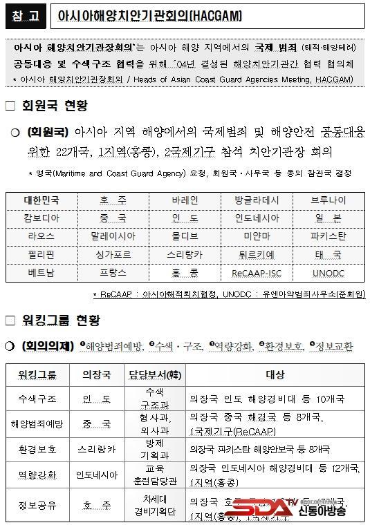 ´ëÇѹα¹, Áß±¹, ÀϺ», ½Ì°¡Æ÷¸£, ¸»·¹À̽þÆ, È£ÁÖ µîÀÌ Âü¼®ÇÏ´Â ¾Æ½Ã¾ÆÇؾçÄ¡¾È±â°üȸÀÇ(HACGAM)´Â 2004³â Á¦1Â÷ ȸÀÇ ÀÌÈÄ 20³âÀ» ¸Â´Â ¾Æ½Ã¾Æ À¯ÀÏÀÇ ÇØ¾ç Çù·Â ´ÙÀÚÇùÀÇü·Î ¿ÃÇØ¿¡´Â ¡®¿ì¸®ÀÇ ¹Ù´Ù¸¦ °¡²Ù¸ç ¹Ì·¡¸¦ º¸ÀåÇÏ´Ù.(Gardening our seas, Securing our tomorrow)¡¯´Â ½½·Î°Ç ¾Æ·¡ °³ÃֵȴÙ.