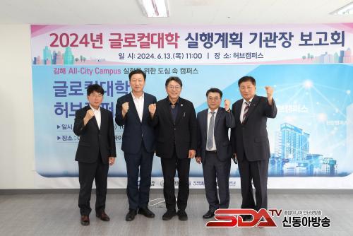 À̹ø º¸°íȸ¿¡´Â ±èÇØ½ÃÀå, ÀÎÁ¦´ëÇб³ ÃÑÀå, °¡¾ß´ëÇб³ ÃÑÀå, ±èÇØ´ëÇб³ ÃÑÀå, ±èÇØ»ó°øÈ¸ÀÇ¼Ò È¸Àå µî 20¿©¸íÀÇ ±Û·ÎÄôëÇÐ ÃßÁø °ü°èÀÚµéÀÌ Âü¼®ÇÏ¿©, ÁßÁ¡ ÃßÁøÀü·«ÀÎ ¡®¿Ã ½ÃƼ Ä·ÆÛ½º(ALL CITY CAMPUS)¡¯ÀÇ ±¸Ã¼ÀûÀÎ ½ÇÇà°èȹÀÌ Æ÷ÇÔµÈ ½ÇÇà°èȹ¼ ÃʾÈÀ» º¸°íÇÏ¿© ÃßÁø»óȲÀ» Á¡°ËÇϰí ÀǰßÀ» ¼ö·ÅÇß´Ù.