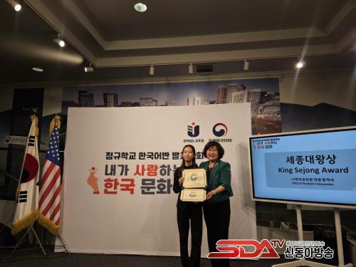 Çѱ¹ÀÇ °¨Á¤¹®ÈÀÎ Á¤(ï×)À» ÁÖÁ¦·Î ¹ßÇ¥ÇÏ¿© Çѱ۴ë»óÀ» ¼ö»óÇÑ Suejung Park ÇлýÀº ¡°Çб³¿Í ÁÖ¸» ÇѱÛÇб³¿¡¼ ¹è¿î Çѱ¹¾î ½Ç·ÂÀ¸·Î ÀÚ¶û½º·¯¿î Çѱ¹¹®È¸¦ ¹ßÇ¥ÇÒ ¼ö ÀÖ´Â ±âȸ¸¦ °®°Ô µÈ °Í¿¡ °¨»çÇÏ´Ù.¡±¸é¼ ¡°¾ÕÀ¸·Î ´õ ¿½ÉÈ÷ Çѱ¹¾î¸¦ ¹è¿ö¼, Çѱ¹¹®È¸¦ ¹Ì±¹ »ç¶÷µé¿¡°Ô ¼Ò°³ÇÏ´Â ¿¬°á°í¸®ÀÇ ¿ªÇÒÀ» ÇÏ°í ½Í´Ù¡±´Â Æ÷ºÎ¸¦ ¹àÇû´Ù.