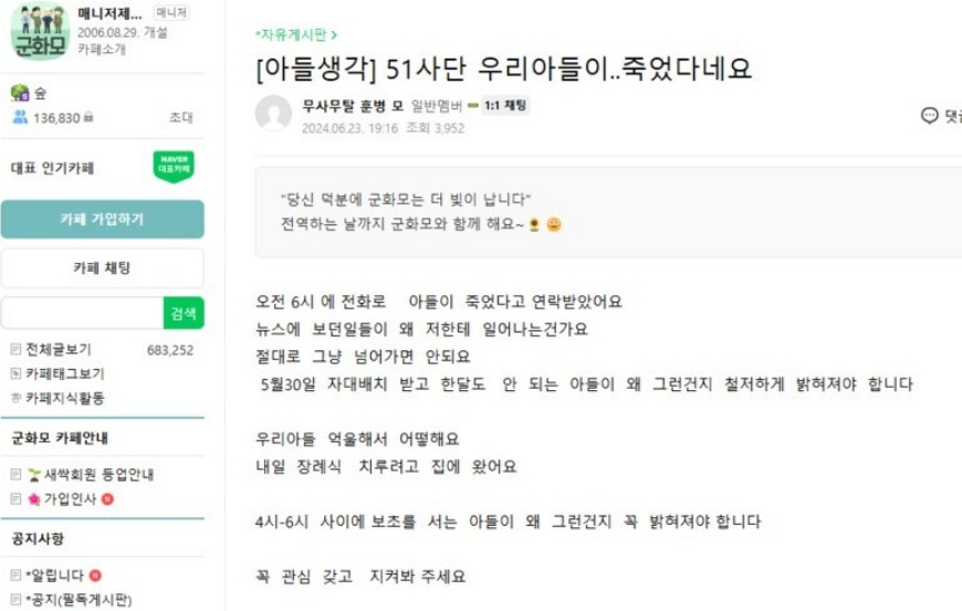 ¡°¿ÀÀü 6½Ã¿¡ ÀüÈ·Î ¡®¾ÆµéÀÌ Á×¾ú´Ù¡¯´Â ¿¬¶ôÀ» ¹Þ¾Ò´Ù.¡± ¡°ÀÚ´ë ¹èÄ¡¸¦ ¹ÞÀº Áö ÇÑ ´Þµµ ¾È µÈ ¾ÆµéÀÌ ¿Ö ±×·± °ÍÀÎÁö öÀúÇÏ°Ô ¹àÇôÁ®¾ß ÇÑ´Ù¡±