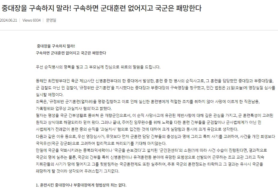 ¹®¿µÀÏ ¿¹ºñ¿ª ÁßÀåÀº Àü¿ªÇÑ º°µéÀÇ ¸ðÀÓÀÎ ¡®¼º¿ìȸ¡® ȨÆäÀÌÁö¿¡ Áö³ 21ÀÏ, "Áß´ëÀåÀ» ±¸¼ÓÇÏÁö ¸»¶ó! ±¸¼ÓÇÏ¸é ±º´ëÈÆ·Ã ¾ø¾îÁö°í ±¹±ºÀº ÆÐ¸ÁÇÑ´Ù"¶ó´Â Á¦¸ñÀÇ ±Û¿¡¼,
