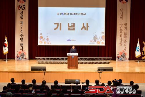 À̹ø Çà»ç´Â 6․25ÀüÀïÀÇ ¿ª»çÀû ÀÇÀǸ¦ µÇ»õ±â°í ±¹°¡¸¦ À§ÇØ °øÇåÇϰí Èñ»ýÇϽŠÂüÀüÀ¯°øÀÚ¿¡ ´ëÇÑ °¨»çÀÇ ¸¶À½À» ÀüÇϱâ À§ÇÔÀ¸·Î Á¤±â¸í ¿©¼ö½ÃÀå, ½ÃÀÇȸ ÀÇÀå, ±â°ü´ÜüÀå, µµ‧½ÃÀÇ¿ø, º¸ÈÆ‧¾Èº¸´ÜüÀå µî 200¿© ¸íÀÌ Âü¼®Çß´Ù.