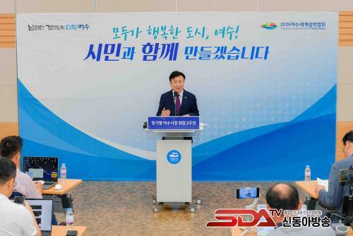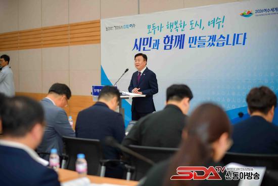 27ÀÏ ½Ã¿¡ µû¸£¸é, À̳¯ Á¤±â¸í ¿©¼ö½ÃÀåÀº ½Ãû ȸÀǽǿ¡¼ ¹Î¼±8±â ÃëÀÓ 2Áֳ⠱âÀÚȸ°ßÀ» °®°í ¡®20´ë ÇÙ½É ¼º°ú¡¯¿Í ¡®¿ªÁ¡ ÇÁ·ÎÁ§Æ®100¡¯ µî ±×°£ÀÇ ¼º°ú¿Í ÇâÈÄ ½ÃÁ¤¿î¿µ¹æÇâ¿¡ ´ëÇØ ¹ßÇ¥Çß´Ù.