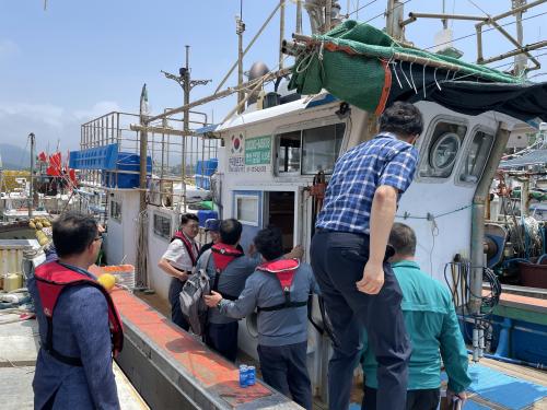 ƯÈ÷ À̳¯ ÇÕµ¿Á¡°ËÀº ÇØ¾ç¼ö»êºÎ ¾î¾÷ÀÚ¿øÁ¤Ã¥°ü(ÃÖÇöÈ£)ÀÌ Á÷Á¢ °ÝÆ÷Ç׿¡ ¹æ¹®ÇÏ¿© ¾î¾÷Àε鿡°Ô ÃâÇ×Àü ¾ÈÀüÁ¡°Ë »ýȰȭ, ±¸¸íÁ¶³¢ Âø¿ë, ¹«¼±¼³ºñ(¹«Àü±â) ¹× À§Ä¡¹ß½ÅÀåÄ¡ »ó½Ã Á¤»ó ÀÛµ¿, »ç°í¿¹¹æ ¾ÈÀü¼öÄ¢ Áؼö µîÀ» ÁýÁß Á¡°ËÇßÀ¸¸ç ¾î¼±¿ø »ê¾÷¾ÈÀüºÐ¾ß Á¡°Ëµµ ÇÔ²² ÁøÇàÇß´Ù.