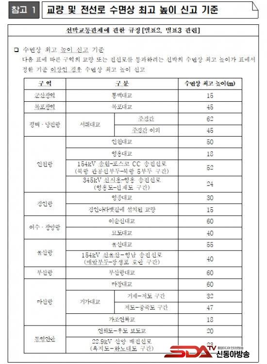 °³Á¤µÈ ±ÔÁ¤¿¡ µû¸£¸é ÁöÁ¤µÈ ±³·® ¶Ç´Â Àü¼±·Î¸¦ Åë°úÇÏ·Á´Â ¼±¹Ú Áß ¼ö¸é»ó ³ôÀ̰¡ ÇØ¾ç°æÂûûÀÌ °í½ÃÇÑ ±âÁØ ÀÌ»óÀÎ ¼±¹ÚÀº °üÇÒ VTS¼¾ÅÍ¿¡ ½Å°íÇÏ°í °üÁ¦»çÀÇ Áö½Ã¿¡ µû¶ó¾ßÇϸç, ½Å°íÀǹ«¸¦ À§¹ÝÇÑ ¼±ÀåÀº 300¸¸¿ø ÀÌÇÏÀÇ °úÅ·ᰡ ºÎ°úµÈ´Ù.
