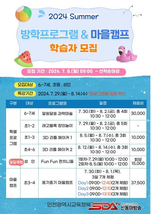 Á־ȵµ¼°üÀº 7¿ù 22ÀϺÎÅÍ 8¿ù 14ÀϱîÁö ¿©¸§¹æÇÐÀ» ¸ÂÀº ¾î¸°À̵éÀ» À§ÇÑ Æ¯º° ÇÁ·Î±×·¥À» ¿î¿µÇÑ´Ù.