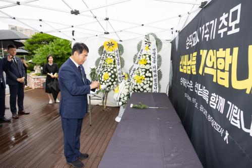 ÀÌÁ¤¼± ±¤Áֽñ³À°°¨, ¼øÁ÷±³»ç 1ÁÖ³â Ãß¸ð°ø°£ ã¾Æ ÇåÈ­