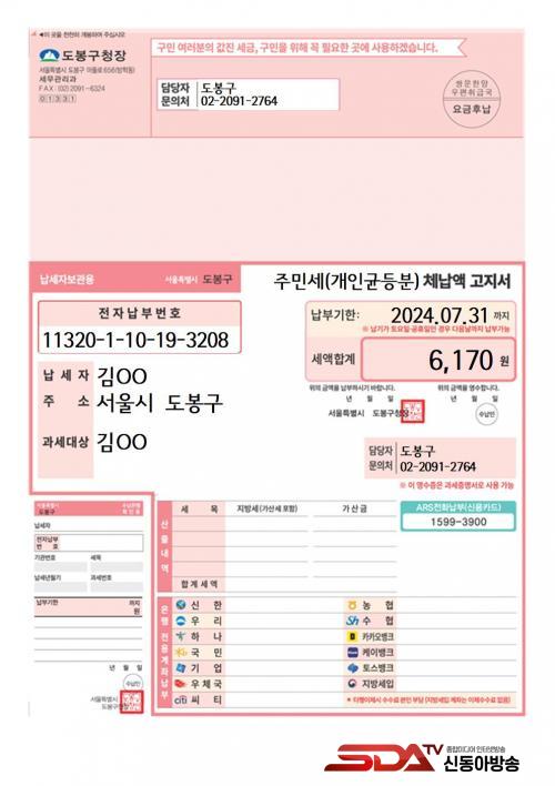 [½Åµ¿¾Æ¹æ¼Û=À̽ŵ¿±âÀÚ] µµºÀ±¸(±¸Ã»Àå ¿À¾ð¼®)°¡ ÀÌ´ÞºÎÅÍ ³³¼¼ÀÚ ÆíÀǸ¦ À§ÇØ Å« ±Û¾¾ÀÇ Ã¼³³°íÁö¼­¸¦ ¹ß¼ÛÇÑ´Ù°í ¹àÇû´Ù.
