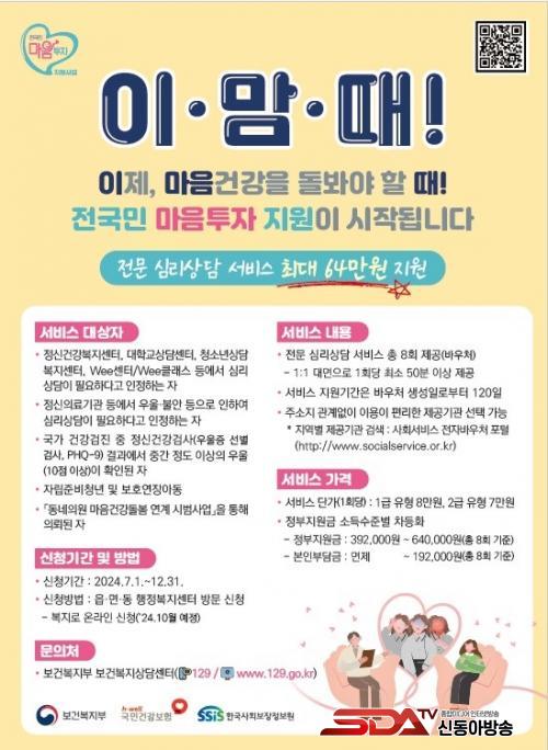 Áö¿ø ´ë»óÀº ¡âÁ¤½ÅÀÇ·á±â°ü¡¤Á¤½Å°Ç°º¹Áö¼¾ÅÍ¡¤´ëÇб³»ó´ã¼¾ÅÍ¡¤Ã»¼Ò³â»ó´ãº¹Áö¼¾ÅÍ¡¤Wee¼¾ÅÍ/Ŭ·¡½º µî¿¡¼ ½É¸®»ó´ãÀÌ ÇÊ¿äÇÏ´Ù°í ÀÎÁ¤ÇÏ´Â ÀÇ·Ú¼¸¦ ¹ß±Þ¹ÞÀº ÀÚ ¡â±¹°¡°Ç°°ËÁø(¿ì¿ïÁõ ¼±º°°Ë»ç, PHQ-9)¿¡¼ Áß°£ Á¤µµ ÀÌ»óÀÇ ¿ì¿ïÀÌ È®ÀÎµÈ ÀÚ ¡âÀÚ¸³Áغñû³â ¹× º¸È£¿¬À徯µ¿ µîÀ» ´ë»óÀ¸·Î ÇÑ´Ù.