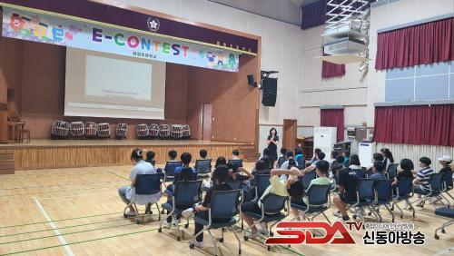 [½Åµ¿¾Æ¹æ¼Û=À̽ŵ¿±âÀÚ] È­¿øÃʵîÇб³(±³Àå ±è¹ÌÇâ)´Â 2011³âºÎÅÍ ¿µ¾î Ư»ö±³À° ÇÁ·Î±×·¥ÀÇ ÀÏȯÀ¸·Î E-Contest¸¦ ÁøÇàÇØ ¿À°í ÀÖ´Ù. E-Contest´Â ÇлýµéÀÌ Á÷Á¢ ¾´ ¿µ¾î ´ë»ç·Î ¿ªÇÒ±ØÀ» ÃÔ¿µÇÏ°í ÆíÁýÇÏ¿© ¿µ»óÀ¸·Î ¸¸µé¾î ³»´Â ¿µ¾î±³À° Ȱµ¿ÀÌ´Ù. ¿ÃÇØ·Î 14ȸ¸¦ ¸ÂÀÌÇÏ´Â E-Contest´Â ´Ü¼øÇÑ ¿µ¾î ¹ßǥȸ¸¦ ³Ñ¾î ÇлýµéÀÇ ¿µ¾î Ç¥ÇöÀ» Çâ»ó½ÃŰ°í ¼­·Î ÀǰßÀ» Á¸ÁßÇϰí Çù·ÂÇÏ¿© ÀÛǰÀ» ¿Ï¼ºÇÏ´Â °úÁ¤¿¡¼­ ÇÔ²² ¼ºÀåÇÏ´Â Çà»ç·Î ÀÚ¸® Àâ¾Ò´Ù.