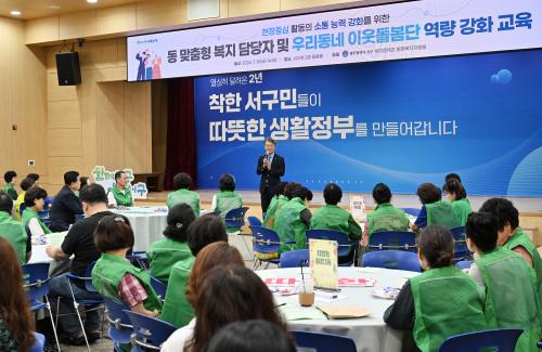 [½Åµ¿¾Æ¹æ¼Û=ÀÌÁöÇö±âÀÚ] ±¤ÁÖ±¤¿ª½Ã ¼­±¸(±¸Ã»Àå ±èÀ̰­)´Â 19ÀÏ ¼­±¸Ã» µéºÒȦ¿¡¼­ ¿ì¸®µ¿³× ÀÌ¿ôµ¹º½´Ü 82¸í°ú µ¿ ¸ÂÃãÇüº¹Áö ´ã´ç °ø¹«¿ø 20¿© ¸íÀ» ´ë»óÀ¸·Î ¼ÒÅë´É·Â °­È­¸¦ À§ÇÑ ¿ª·®°­È­ ±³À°À» ÁøÇàÇß´Ù.