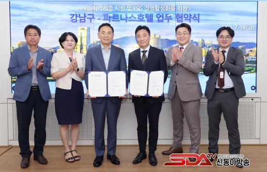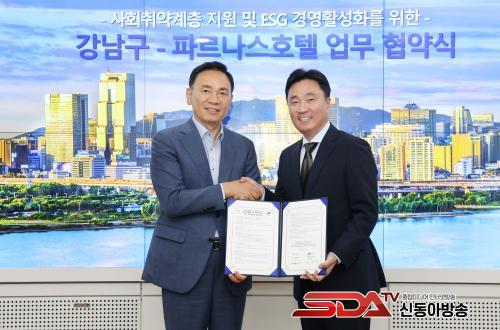 [½Åµ¿¾Æ¹æ¼Û=À̽ŵ¿±âÀÚ]²ÞÀÌ ¸ðÀÌ´Â µµ½Ã, ¹Ì·¡¸¦ ±×¸®´Â °­³²±¸(±¸Ã»Àå Á¶¼º¸í)°¡ 19ÀÏ ±¸Ã» º»°ü¿¡¼­ ÆÄ¸£³ª½ºÈ£ÅÚ(´ëÇ¥ÀÌ»ç ¿©ÀÎâ)°ú ¡®»çȸÃë¾à°èÃþÀ» À§ÇÑ °øµ¿»ç¾÷ ¹× ESG °æ¿µ Ȱ¼ºÈ­ ÃßÁø ¾÷¹«Çù¾à¡¯À» ü°áÇß´Ù.