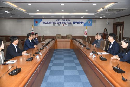 ÃÖ°æ½Ä ³²¿ø½ÃÀåÀº ¡°¿À´Ã Çù¾àÀ» °è±â·Î ¾ç ±â°üÀÌ ÇÔ²² ±Û·Î¹ú »ý¸í»ê¾÷¿¡ ÈûÀ» ¸ð¾Æ ³²¿ø½Ã¿Í ¿ø±¤´ë°¡ µ¿¹Ý ¼ºÀåÇÒ ¼ö ÀÖ´Â Çõ½Å ¸ðµ¨À» ¸¸µé¾î°¡±æ ¹Ù¶õ´Ù. ƯÈ÷, ³²¿ø½Ã¿¡¼ º¸À¯Çϰí ÀÖ´Â ¹Ì·¡ ³ó»ý¸í¹ÙÀÌ¿À»ç¾÷°ú ³²¿ø½Ã¹ÙÀÌ¿À»ê¾÷¿¬±¸¿øÀÇ ¿¬±¸°³¹ß ±â¼úÀÚ¿øÀ» ±â¹ÝÀ¸·Î ±Û·ÎÄôëÇÐ º»ÁöÁ¤À» À§ÇØ Àû±Ø Çù·ÂÇϰڴ١±°í ¸»Çß´Ù.