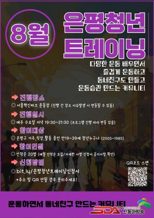 ¸ðÁý ´ë»óÀº ÀºÆò±¸¿¡¼ °ÅÁÖÇϰųª Ȱµ¿ÇÏ´Â 19¼¼ºÎÅÍ 39¼¼±îÁö û³âÀÌ´Ù. ¿À´Â 9¿ù±îÁö ÇÁ·Î±×·¥ÀÌ ¿¸®¸ç, ¸Å¿ù ¸¶Áö¸· ÁÖ ¿ù¿äÀϺÎÅÍ ³»´Þ Âü¿©ÀÚ¸¦ 20¸í¾¿ ¸ðÁýÇÑ´Ù. 8¿ù ÇÁ·Î±×·¥Àº ¿À´Â 29ÀϺÎÅÍ ½Åû¹Þ´Â´Ù.