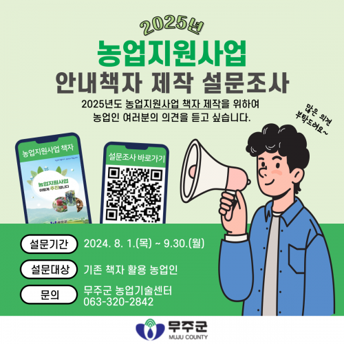 ³ó¾÷Àε鿡°Ô ½ÇÁúÀûÀÎ µµ¿òÀ» Áִ åÀÚ ¹ß°£À» À§ÇØ 8¿ù 1ÀϺÎÅÍ 9¿ù 30ÀϱîÁö ¿Â¶óÀÎ(https://moaform.com/q/tQddbn) URL Á¢¼Ó°ú QRÄÚµå Âü¿©·Î ¼³¹®À» ÁøÇàÇÑ´Ù.