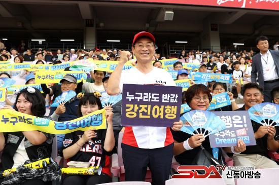 À̳¯ °æ±âÀå¿¡¼´Â °Áø¿ø ±º¼ö¸¦ ºñ·ÔÇØ ¼¼ø¼± °Áø±ºÀÇȸÀÇÀå µî °øÁ÷ÀÚ 200¿© ¸íÀÌ Âü¿©ÇØ, °æ±âÀåÀ» ãÀº ¾ß±¸ÆÒµé¿¡°Ô ÇϸÆÃàÁ¦¿Í ¹Ý°ª °Áø¿©Çà ¾È³» È«º¸¹°À» ¹èºÎÇϰí, ûÁ¤ °Áø¿¡¼ »ý»êÇÑ ½ÒÀ» ³ª´²ÁÖ´Â µî ¹«´õÀ§ ¼Ó ¡®°Áø ¾Ë¸®±â¡¯¿¡ ±¸½½¶¡À» Èê·È´Ù.