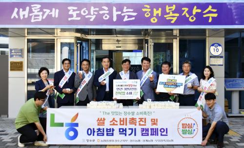 À̳¯ ¶± ³ª´® Çà»ç¿¡´Â ÃÖÈÆ½Ä Àå¼ö±º¼ö, ±èÁØ¿À ³óÇùÁß¾Óȸ Àå¼ö±ºÁöºÎÀå, ±è¿ëÁØ Àå¼ö³óÇùÁ¶ÇÕÀå, °ûÁ¡¿ë Àå°è³óÇùÁ¶ÇÕÀå, ¼ÛÁ¦±Ù ¹«ÁøÀåÃàÇùÁ¶ÇÕÀå µîÀÌ Âü¼®ÇØ Àå¼ö½Ò·Î ¸¸µç ¶±À» ³ª´©¸ç ¾ÆÄ§¹ä ¸Ô´Â ¹®È È®»êÀ» ÅëÇÑ Àå¼ö½Ò ¼ÒºñÃËÁø ¹× ¾ÆÄ§¹ä ¸Ô±â ¿îµ¿À» °¡Á³´Ù.