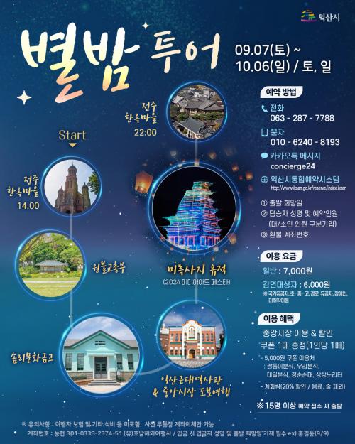 'º°¹ã ÀÍ»ê ¿©Çà'Àº 2024 ÀÍ»ê ¹Ì¸¤»çÁö ±¹°¡À¯»ê ¹Ìµð¾î¾ÆÆ®¿Í ¿¬°èÇÑ »óǰÀÌ´Ù. ÀüÁÖ ÇÑ¿Á¸¶À»¿¡¼­ Ãâ¹ßÇØ ¿øºÒ±³ÃѺÎ, ¼Ø¸®¹®È­±Ý°í, ÀÍ»ê±Ù´ë¿ª»ç°ü, ¹Ì¸¤»çÁö·Î À̾îÁø´Ù.