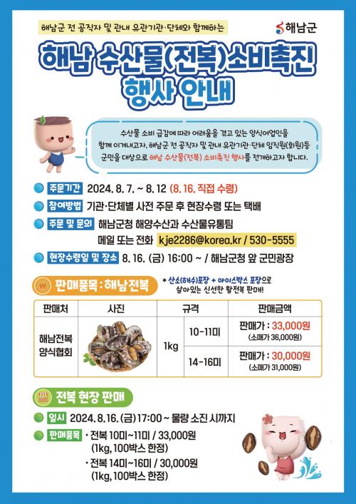 ÇöÀå¹èºÎ Çà»ç¿¡¼´Â »çÀüÁÖ¹®°ú º°°³·Î 200¹Ú½º ÇÑÁ¤À¸·Î Àüº¹ ÇÒÀÎÆÇ¸Åµµ ½Ç½ÃÇÑ´Ù. ÇØ³²±º Àüº¹¾ç½ÄÇùȸ ¼Ò¼Ó ¾ç½Ä ¾î¾÷ÀεéÀÌ Á÷Á¢ »ý»êÇÑ ½Ì½ÌÇÑ Àüº¹À» ÇÒÀÎµÈ °¡°ÝÀÎ 1kg ±âÁØ, 10~11¹Ì 3¸¸3000¿ø, 14~16¹Ì¸¦ 3¸¸¿ø¿¡ ±¸ÀÔÇÒ ¼ö ÀÖ´Ù.
