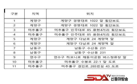ÁÖ¿ä °³¼± »çÇ×À¸·Î´Â ¿¬¼ö±¸ Çϸð´Ï·Î ÇØµ¸À̰ø¿ø ¹ö½ºÁ¤·ùÀå ¾Õ ¹æÈ£¿ïŸ¸® ¼³Ä¡, °è¾ç±¸ °è¾ç¿ª ¾Õ ±³Åë¾ÈÀü Ç¥ÁöÆÇ ¼³Ä¡, ³²µ¿±¸ ¼ö»êµ¿ µµ·Î ¾Õ ¹«´Ü Ⱦ´Ü ±ÝÁö½Ã¼³ ¼³Ä¡ µî 11°ÇÀÌ´Ù.