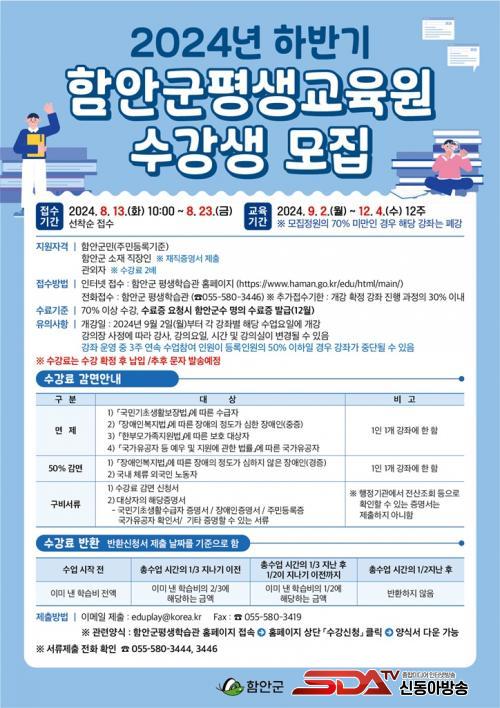 ¼ö°·á´Â ±º Æò»ýÇнÀÁ¶·Ê ¼ö°·á ±âÁØ¿¡ µû¶ó ÁÖ 1ȸ 3½Ã°£ °Á´ 4¸¸ ¿ø, ÁÖ 2ȸ 4½Ã°£ °Á´ 5¸¸ ¿øÀÌ´Ù. ¼ö¾÷ Àå¼Ò´Â Æò»ýÇнÀ°ü, Á¦2Æò»ýÇнÀ°ü(°ø¼³¿îµ¿Àå), »êÀθéÁ¾ÇÕº¹Áö°üÀ¸·Î 3±ºµ¥·Î ³ª´² ÁøÇàÇÑ´Ù. °Á¿Àº ¿À´Â 9¿ù 2ÀϺÎÅÍ 12¿ù 4ÀϱîÁö 12ÁÖ ¿î¿µµÈ´Ù.
