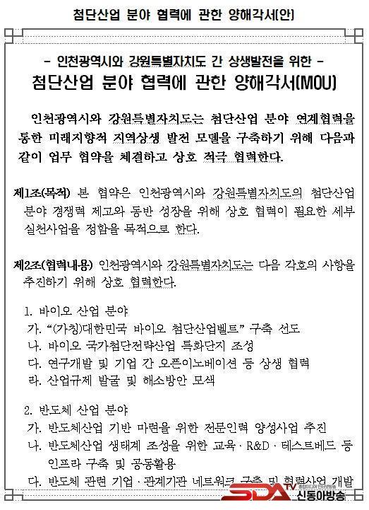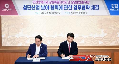 »çÁø=À¯Á¤º¹ ÀÎõ±¤¿ª½ÃÀå°ú ±èÁøÅ °­¿øÆ¯º°ÀÚÄ¡µµÁö»ç°¡ 13ÀÏ ½Ãû Á¢°ß½Ç¿¡¼­ ¿­¸° 'ÀÎõ±¤¿ª½Ã-°­¿øÆ¯º°ÀÚÄ¡µµ ÷´Ü»ê¾÷ ºÐ¾ß Çù·Â ¾÷¹«Çù¾à ü°á½Ä'¿¡¼­ Çù¾àÀ» ü°áÇϰí ÀÖ´Ù.