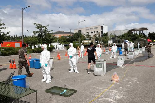 À̹ø ÈÆ·ÃÀº ¹Ì»çÀÏ °ø°Ý¿¡ ÀÇÇÑ ÇѺû¿øÀü¿¡ ¹æ»ç´ÉÀÌ ´©ÃâµÇ´Â »óȲÀ» °¡Á¤ÇÏ¿© ¿øÀüÀα٠ÁÖ¹ÎÀÇ ÀθíÇÇÇØ ¹ß»ý¿¡ µû¸¥ ½Å¼ÓÇÑ ´ëÀÀ°ú ÀÎ¸í ±¸Á¶ ´É·ÂÀ» ¹è¾çÇϰí À¯°ü±â°ü °£ ¿ªÇÒ ºÐ´ã°ú °øÁ¶Ã¼°è È®ÃæÀ¸·Î ±º¹ÎµéÀÇ ¾ÈÀüÀ» Áö۱â À§ÇØ ÁøÇàÇß´Ù.