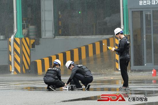 ÀÌÈÄ Å×·¯ ¿ëÀÇÀÚ°¡ °øÀåÀ¸·Î ÁøÀÔÇÑ »óȲÀ» °¡Á¤ÇØ °æÂûÀÌ Å×·¯ ¿ëÀÇÂ÷·® µµÁַθ¦ Â÷´ÜÇϰí Å×·¯¹üÀ» üÆ÷ÇßÀ¸¸ç, ¼Ò¹æÂ÷ Ã⵿ µÚ ÈÀçÁøÈ¿Í ÀÎ¸í±¸Á¶ Ȱµ¿À» ¿Ï·áÇÑ ÈÄ ¿À¿°¹°Áú ŽÁö, ¼Òµ¶ ¹× º¹±¸ÀÛ¾÷, »ç°í¿øÀÎ Á¶»ç ¼øÀ¸·Î ÈÆ·ÃÀ» ¸¶¹«¸®Çß´Ù.