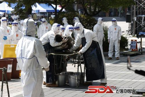 ÈÆ·Ã ÁøÇàÀº °æº¸ÀüÆÄ¸¦ ½ÃÀÛÀ¸·Î ¹æ»ç´É¿¡ ¿À¿°µÈ Àåºñ¸¦ Á¦¿°Çϰí, ÇÇÆø ȯÀÚ ºÐ·ù, Á¦¿° µîÀ» ½Ç½ÃÇÑ ÀÌÈÄ Áø·á ¹× ÈÄ¼Û ¼øÀ¸·Î ÁøÇàµÆ´Ù. ºñ»ó½Ã ¿ì¹ß»óȲÀ» ÇØ°áÇϱâ À§ÇÑ Çö¾È°úÁ¦ ÅäÀǵµ ½Ç½ÃÇß´Ù.