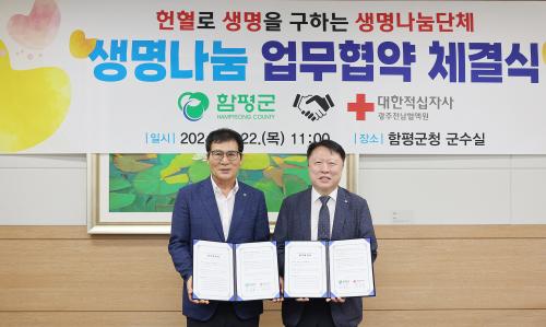 [½Åµ¿¾Æ¹æ¼Û=ÃÖ¿ëÀϱâÀÚ] Àü³² ÇÔÆò±ºÀº 22ÀÏ ±¤ÁÖÀü³²Ç÷¾×¿ø°ú ÇåÇ÷¹®È­ È®»ê°ú ³ª´®ÀÇ »çȸÀû °¡Ä¡ ½ÇÇöÀ» À§ÇÑ 'ÇåÇ÷·Î »ý¸íÀ» ±¸ÇÏ´Â »ý¸í³ª´®´Üü ¾÷¹«Çù¾à½Ä'À» ü°áÇß´Ù.