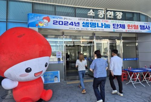 ÃÖ±Ù Àα¸ °í·ÉÈ­¿Í °¢Á¾ Áúº´ µîÀ¸·Î ÀÎÇÑ ÇåÇ÷ °¡´É Àα¸ °¨¼Ò·Î Ç÷¾× ¼ö±Þ¿¡ ¾î·Á¿òÀ» °Þ°í ÀÖ´Â »óȲÀ» ÇØ¼ÒÇϰíÀÚ, ±º »êÇÏ °øÁ÷ÀÚ, ³óÇù, üÀ°È¸, »õ·Òä, ¿µ±¤½Ã´Ï¾îŬ·´ µî 100¿©¸íÀÌ »ç¶ûÀÇ ÇåÇ÷ ¿îµ¿¿¡ Âü¿©Çß´Ù.